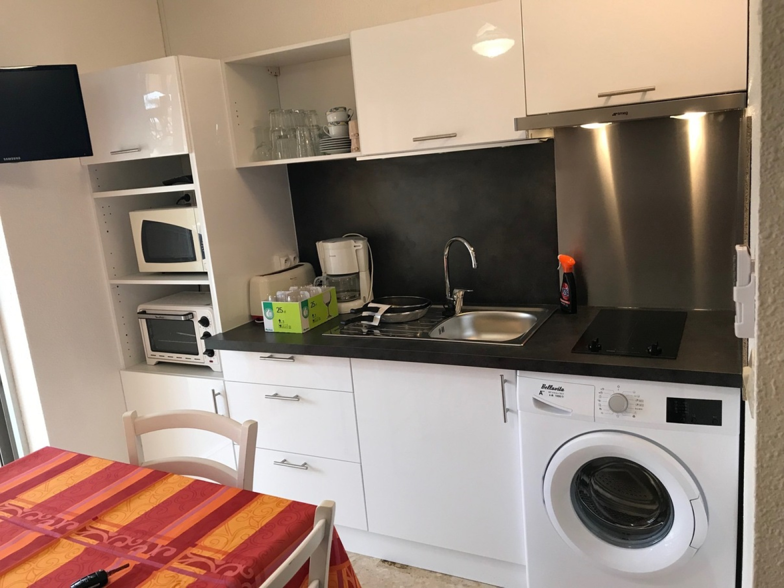 Agréable F1 de 21m² au 1er étage avec ascenseur, vue sur l'étang de Thau comprenant un coin chambre avec placard/penderie, une salle d'eau avec WC, une pièce à vivre avec coin cuisine équipée donnant sur une loggia. LITERIE : 1 lit en 140 + 1 canapé convertible en 140